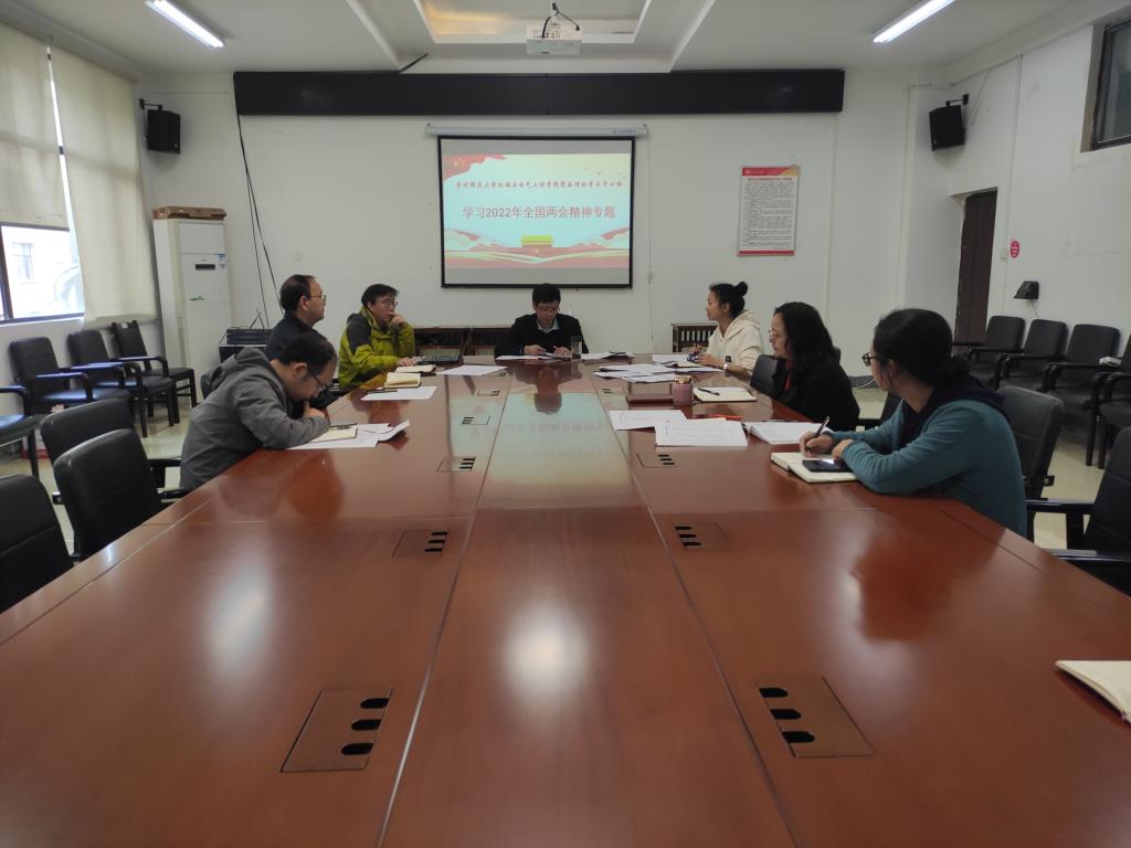 3月28日,必赢网址bwi437在8322会议室召开学院党委理论学习中心组(扩大)学习会,专题学习全国两会精神。学院党委书记郑继明主持,学院党委委员、师生党支部书记代表参加学习。