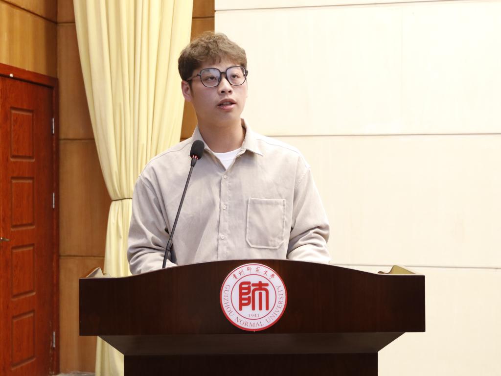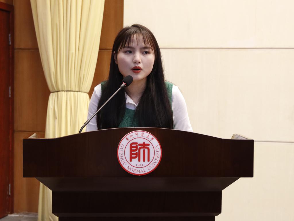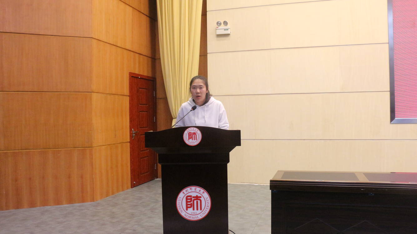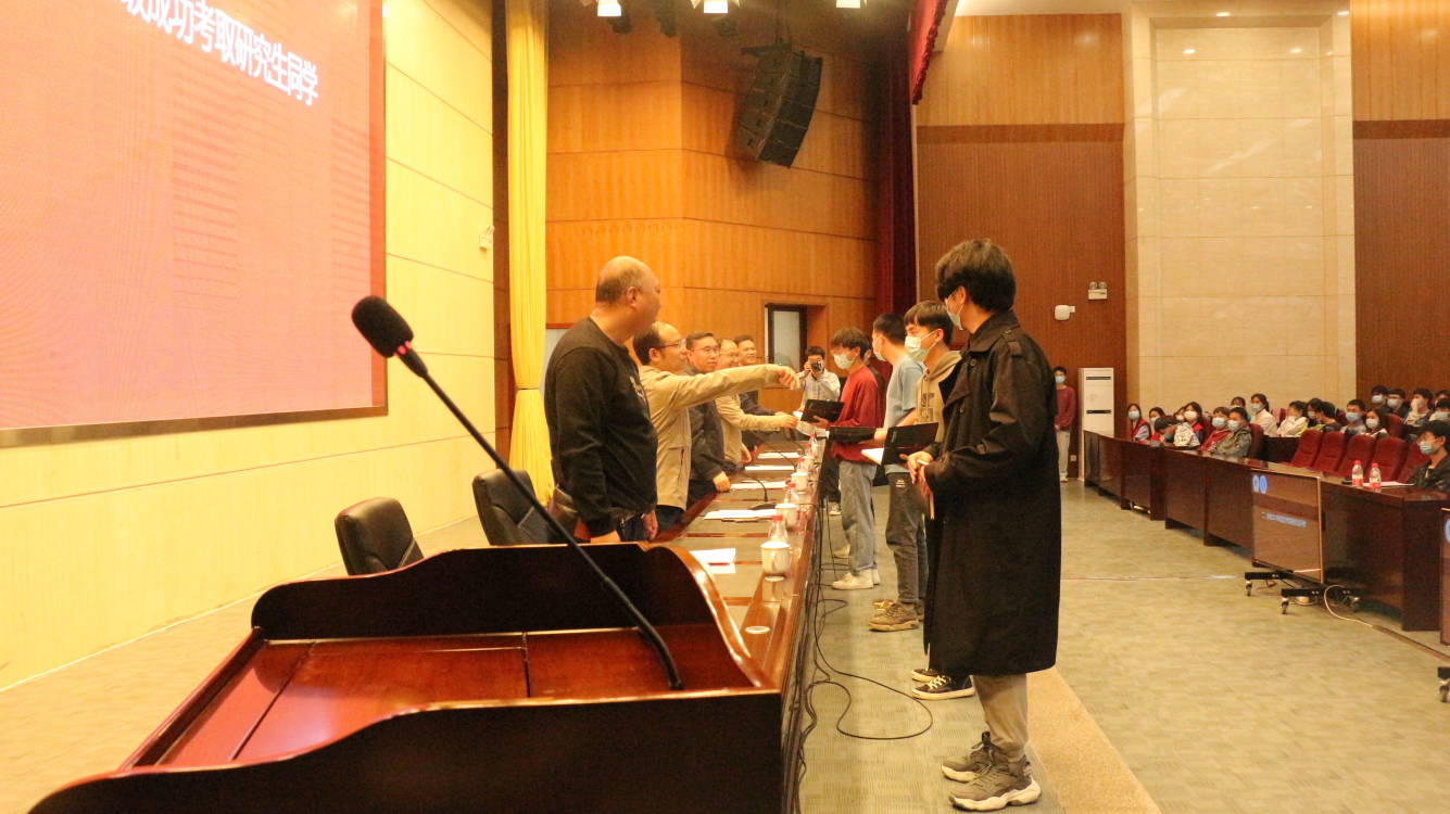 研究生代表周瑜桐通过自身的考研经历给大家总结分享了以下几点经验。第一考研的必要性,通过研究生阶段的学习,同学们将有更高的起点,拥有更开阔的平台;第二院校选择,结合自己的实际情况合理选择院校,不好高骛远;第三备考阶段的时间安排,要合理规划,提高复习效率。2018级成功考取研究生的学生代表王荧荧同学上台发言,她介绍了自己的考研历程和学习心得,并勉励学弟学妹坚定理想,永不言弃,完成自己的考研梦想。