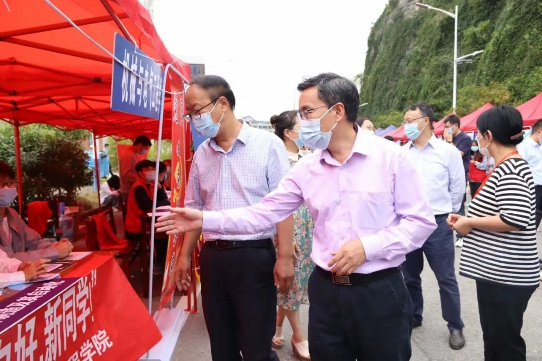 学校及学院领导高度重视本次迎新工作,校党委书记肖远平、校长张绍东亲临现场了解入学报到流程及防疫情况,务求给新生“家”的温暖与安全感。