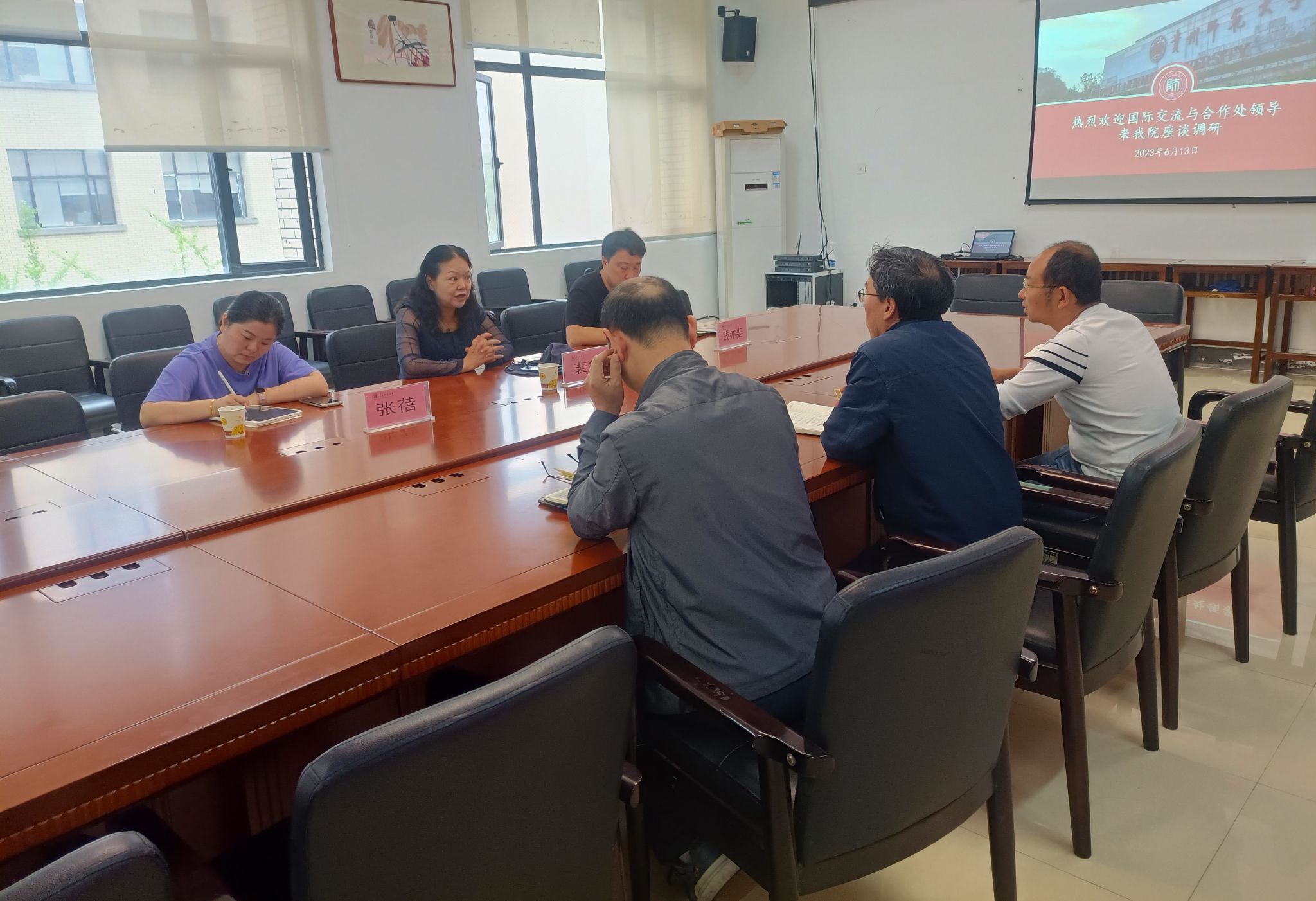 2023年6月13日,国际交流与合作处处长裴筠一行3人到我院针对国际化交流与合作相关事宜展开调研。学院党委书记郑继明、副院长张太华和副书记杨光复参加调研。