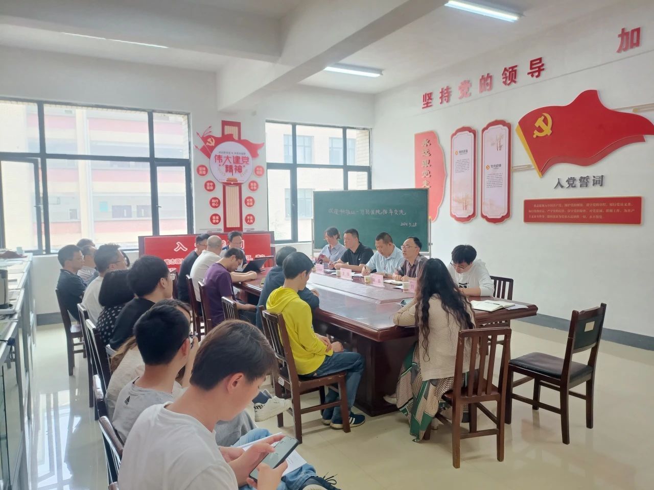 5月28日下午,科技处副处长申铁、科技成果转化工作站专职人员一行到我院调研指导。学院党委书记郑继明、科研秘书王思鹏、全体博士及相关教师参加会议。