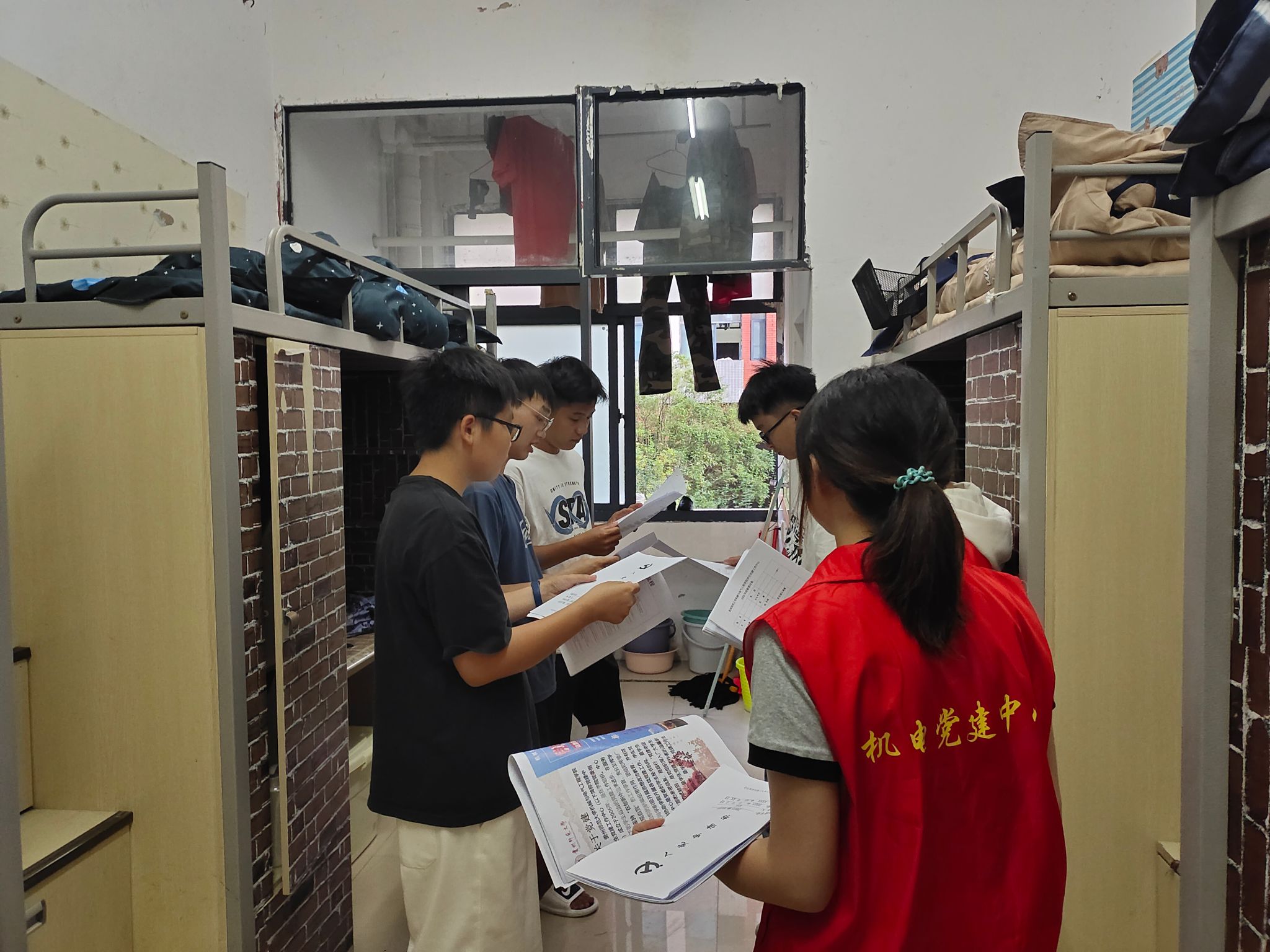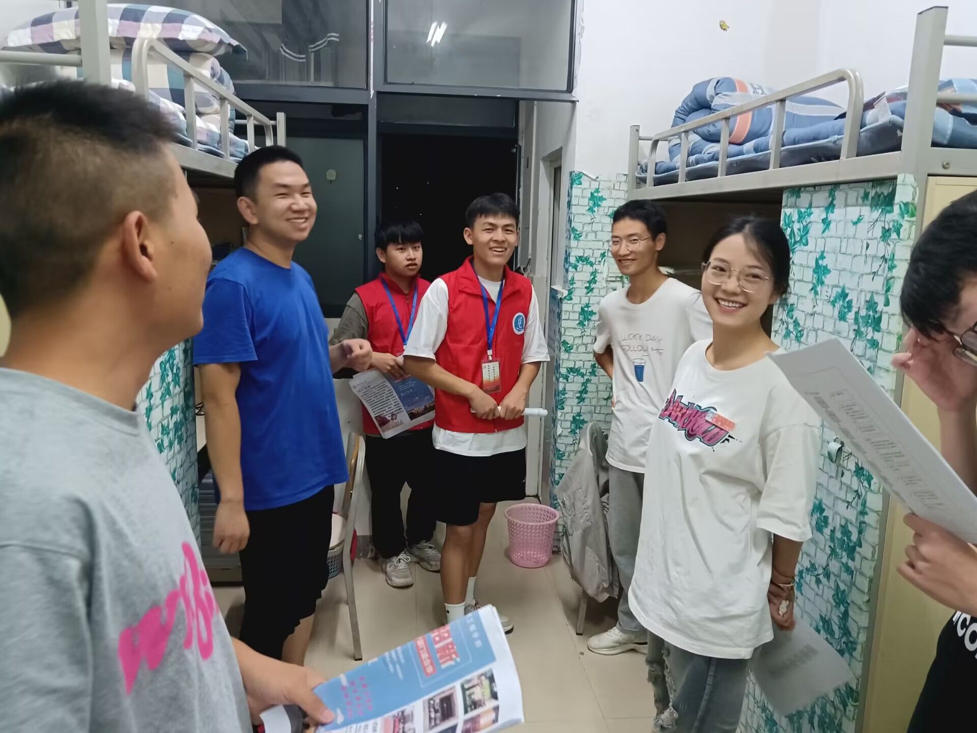 为进一步引导和帮助广大新生了解党的基本知识、理论和入党程序,端正入党动机,树立正确的世界观、人生观和价值观,更好地实施2023级新生“启航计划”,引导新同学们更好地了解中国共产党,走近中国共产党,增强党在青年学生中的吸引力和凝聚力,9月1日晚,我院学生党建工作中心学生干部和学生党员一起,深入走访新生寝室,向2023级的新同学们宣传党的基本知识和入党流程。