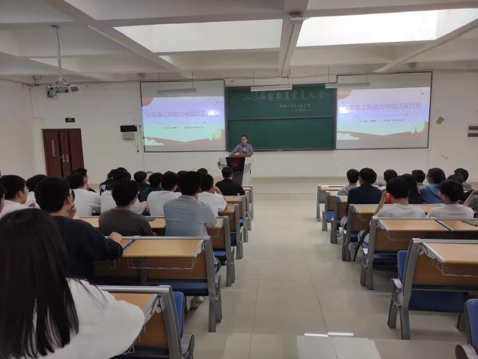 为进一步加强2023届毕业生党员的教育管理,更加有序做好毕业生组织关系转接工作,更好发挥毕业生党员在文明离校过程中的作用,4月23日,我院在GJ6301教室召开毕业生党员大会,党委书记郑继明出席,组织员邢丹花主持会议,学院全体毕业生党员参加。