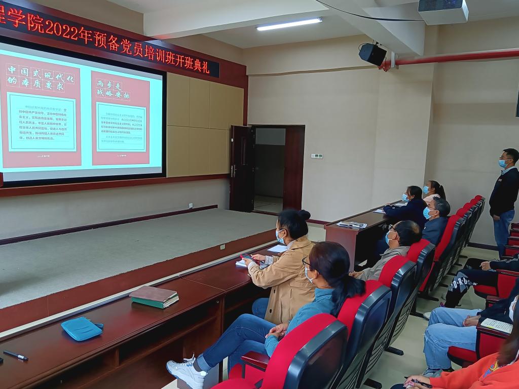 为进一步加强学院党员教育培训,确保新党员在预备期内接受较为系统的党的理论知识和纪律规矩教育,强化党性锻炼,提高新党员的思想政治素质,弘扬伟大建党精神,自信自强、守正创新,踔厉奋发、勇毅前行,成为实现中华民族伟大复兴的先锋力量。10月21日,我院在8403报告厅举行2022年预备党员培训班开班典礼。参加培训的有40多名预备党员,学院党委书记郑继明、党委副书记杨光复和各学生党支部书记出席开班典礼。