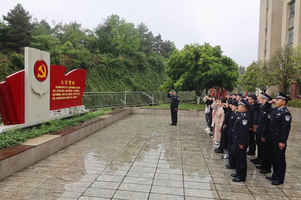 随后,共建支部全体党员共同前往地环学院参观“中国精神”红色文化长廊,解说员以党在革命、建设、改革各时期领导下的伟大精神为依托,生动讲述了中国共产党走过的峥嵘岁月,着重凸显中国共产党人的精神谱系。参观学习结束时,由贵州省出入境边防检查总站执勤一队党支部副书记张杰同志的领誓,全体党员面向党旗重温入党誓词,彰显了对党忠诚、坚定理想信念、时刻保持党员本色的决心。