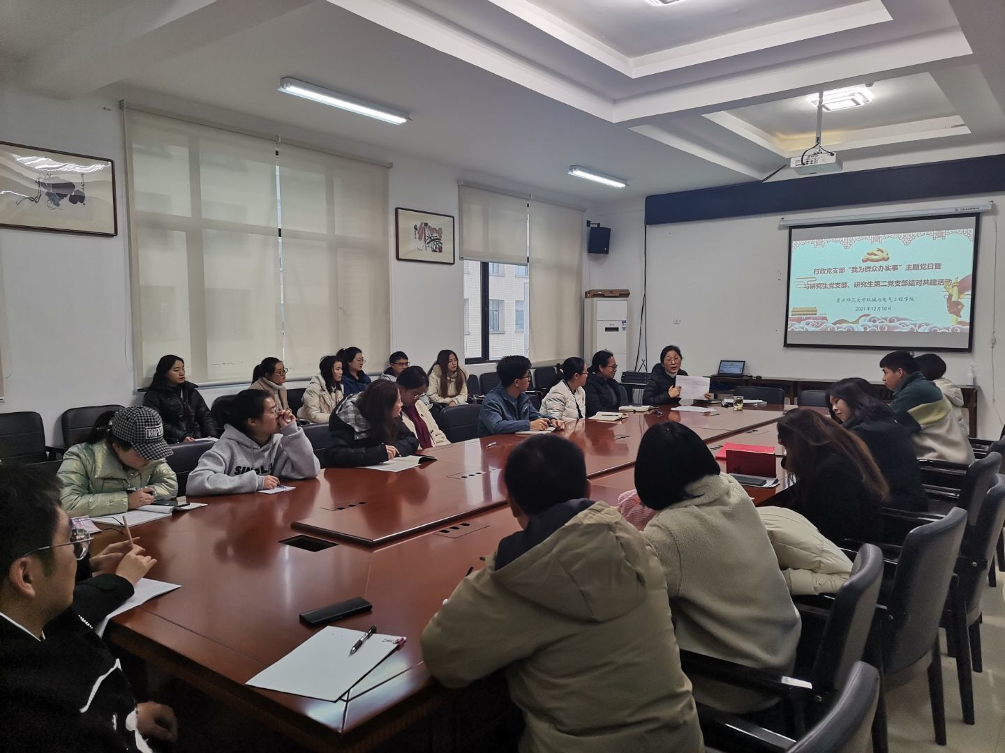 12月10日,我院行政党支部在8322会议室开展“我为群众办实事”主题党日暨与研究生党支部、研究生第二党支部结对共建活动。活动围绕前期摸底调研工作中发现的研究生应届毕业生就业压力大、应试能力不足等问题,组织行政党支部科级干部代表和资深辅导员教师与研究生进行求职经验交流,重点是高校辅导员备考指导。