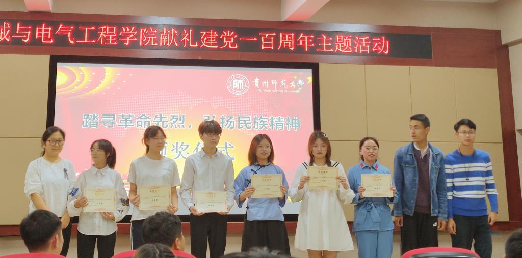 为庆祝中国共产党成立100周年,缅怀革命历史,弘扬爱国精神,增强民族自豪感与自信心,多种形式开展党史学习教育。5月21日晚,在历经一个多月的准备后,由必赢网址bwi437学生党总支主办,学院学生党建工作中心承办并承担主要演出任务的献礼建党100周年“踏寻革命先烈足迹,弘扬伟大民族精神”主题文艺演出暨评比表彰活动在学院8403报告厅举行。学院学生党建工作中心全体成员、团学青、宣传中心、各班学生代表观看演出,学院党委组织员邢丹花、2020级辅导员曹允刚、党建工作中心主要负责人担任节目的评委。
