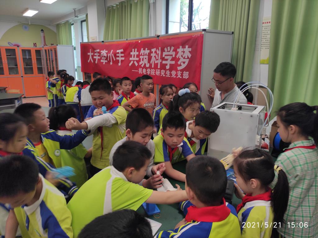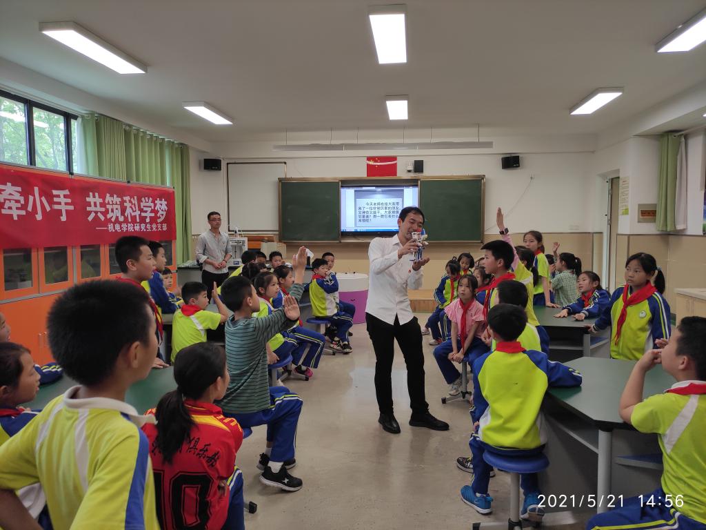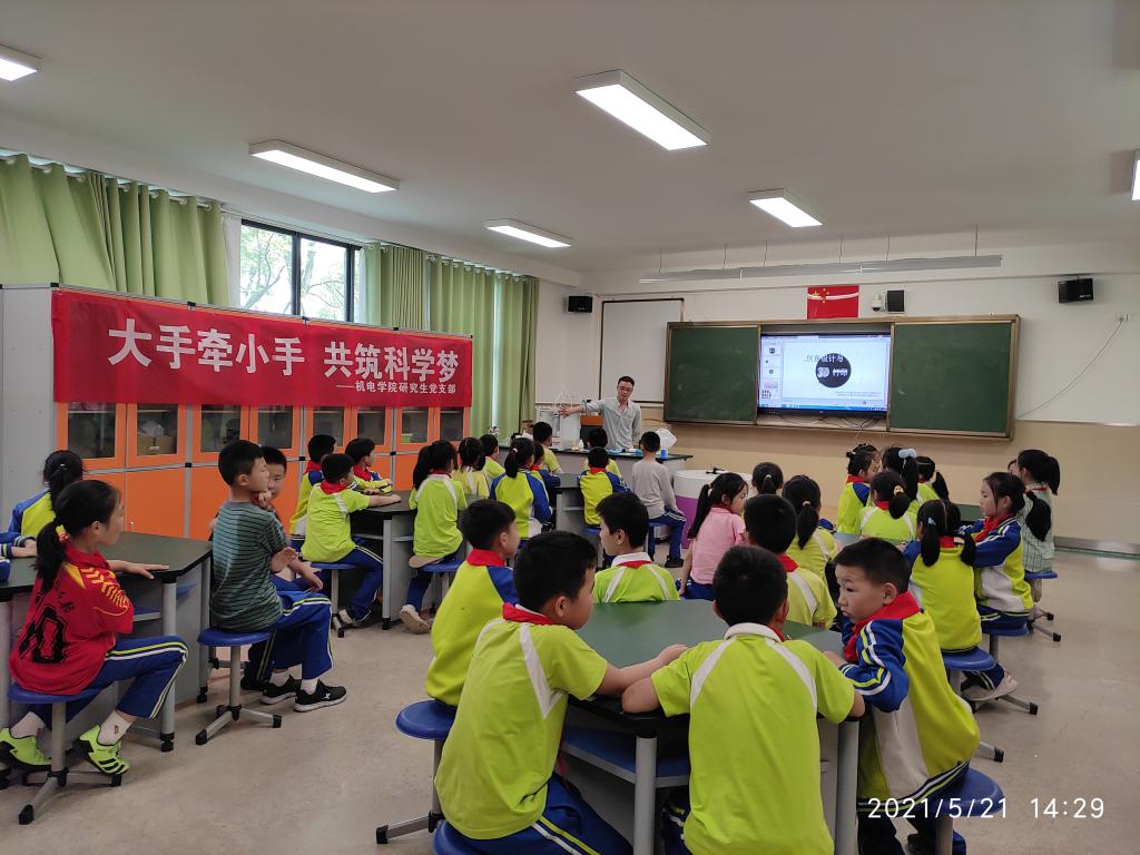 为激发中小学生学科学、爱科学、用科学的热情,作为党史学习教育“我为群众办实事”的任务之一,5月21日,我院研究生党支部书记邢丹花与支部党员代表王书祥、黄译锋一起,到必赢网址bwi437贵安附属小学开展了“大手牵小手 共筑科学梦”科普教育活动,该小学三(6)班班主任老师莫先宏和近50名小学生参加活动。