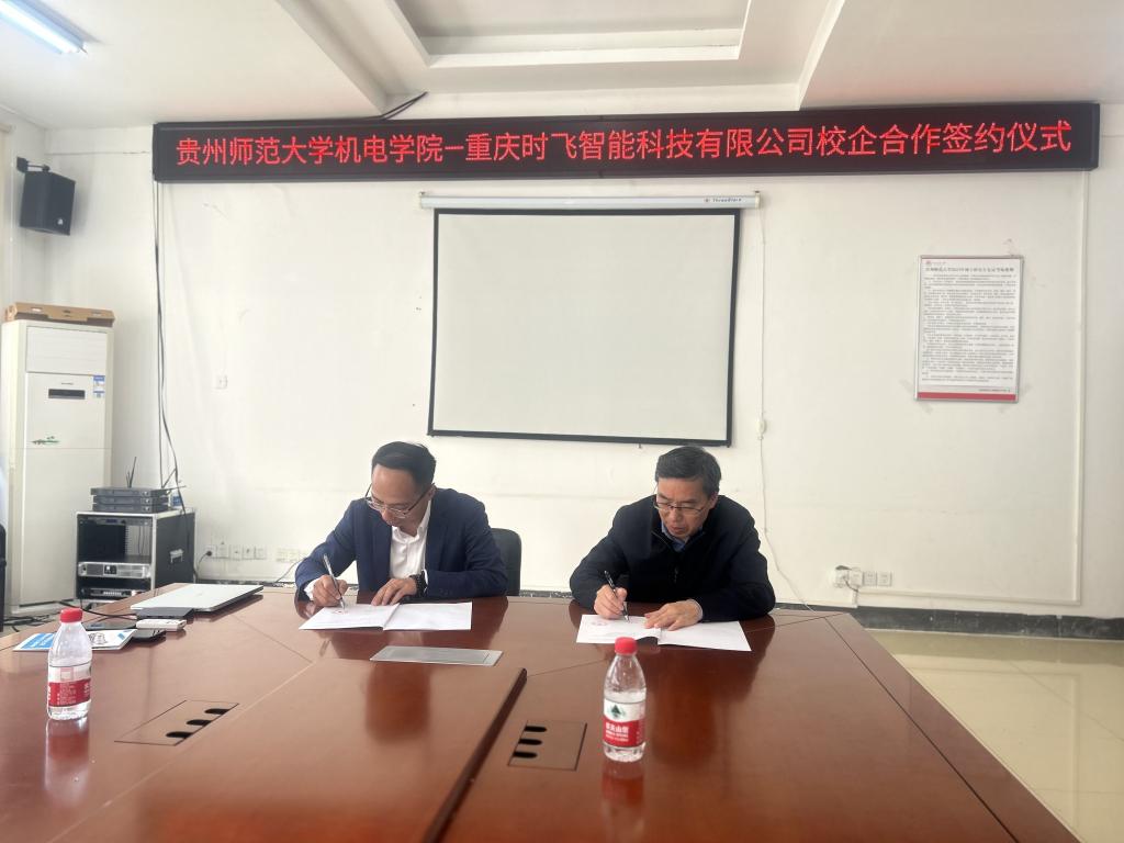 4月27日,必赢网址bwi437与重庆时飞智能科技有限公司校企合作协议签约仪式在8322会议室举行。学院党委书记郑继明、副书记杨光复,我院2011届毕业生、优秀校友、时飞科技董事长谭飞、总经理杜国华出席仪式。
